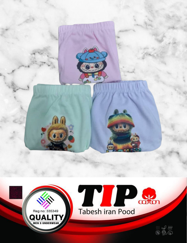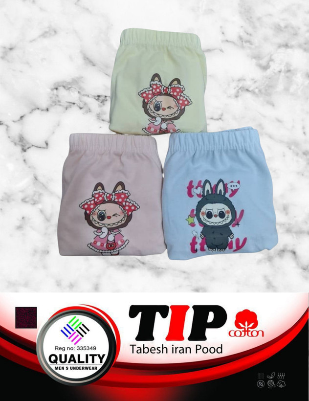 شورت دخترانه تابش ایران پود مدل اسلیپ سوپرپنبه اعلاء طرح لبوبو مجموعه شش عددی