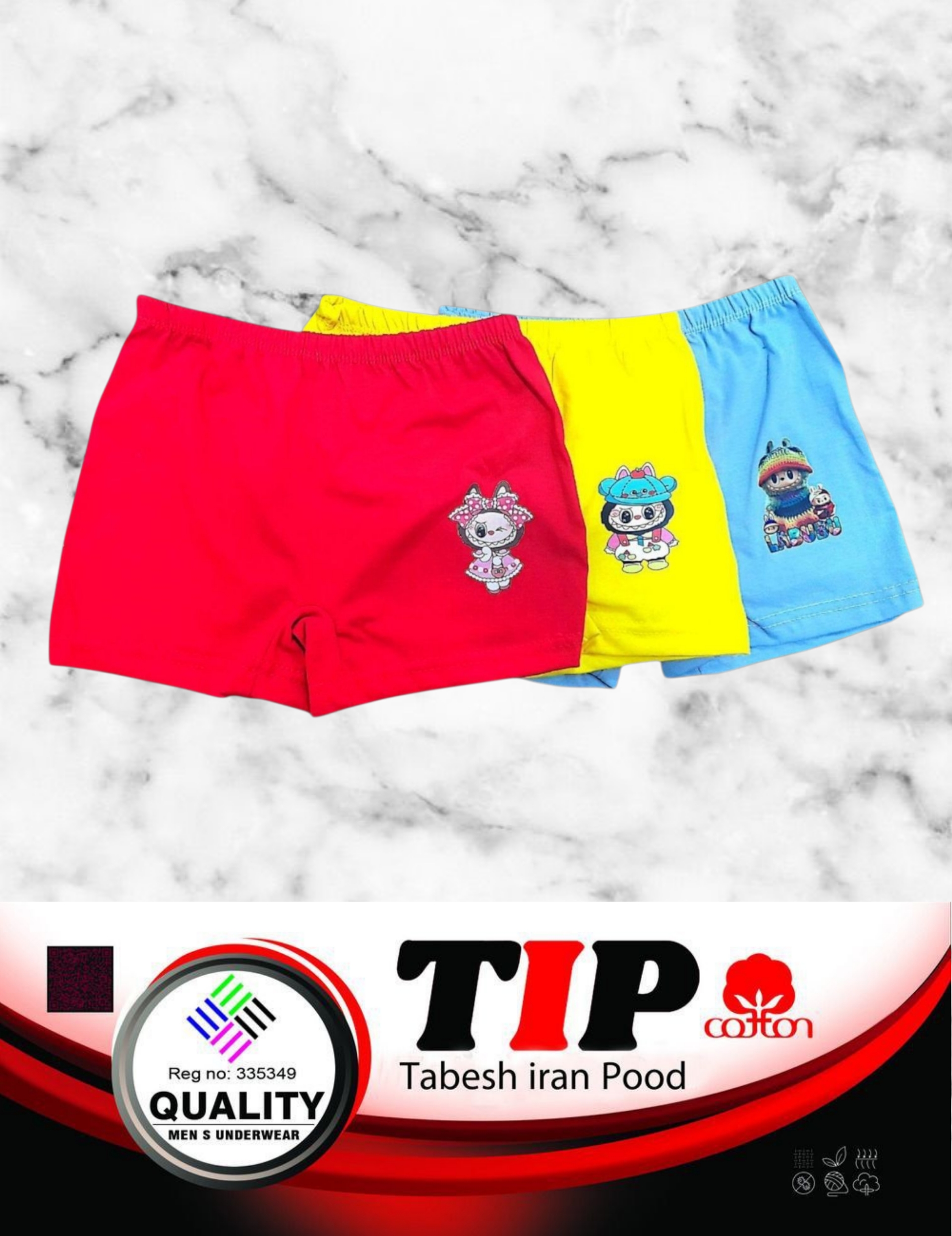 شورت دخترانه تابش ایران پود مدل پادار سوپرپنبه اعلاء طرح لبوبو مجموعه شش عددی